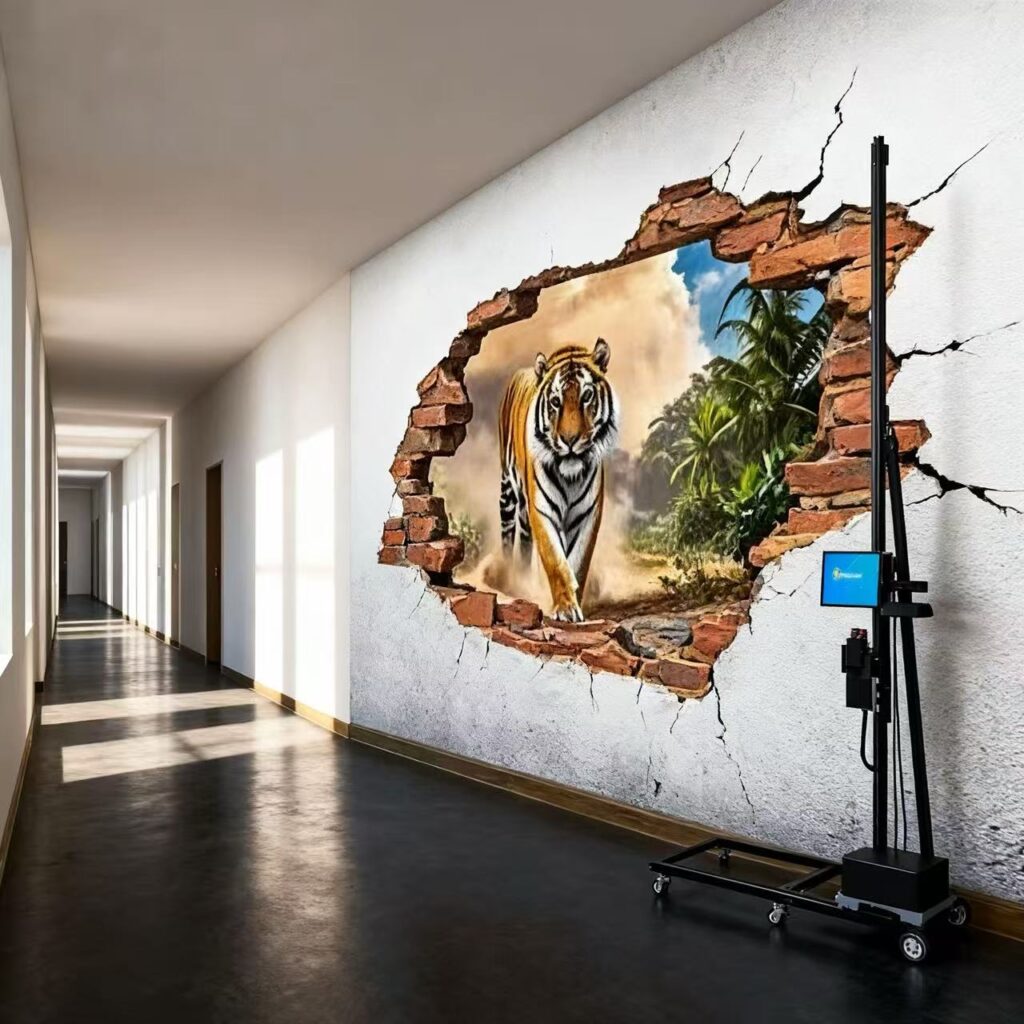 Wanddruck ist eine innovative Möglichkeit, Wände zu gestalten. Wir bieten einen Grafik-, Bild-, Logo- oder Werbedruckservice an. Dank eines Wanddruckers sind wir in der Lage, jedes Bild oder jede Grafik direkt an die Wand zu übertragen und so eine wunderschöne Inneneinrichtung zu schaffen. Dank der innovativen Drucktechnik sind wir in der Lage, jede Wand zu beleben. Der Wanddruck ist eine revolutionäre Drucktechnologie, mit der Sie Ihre Wände auf eindrucksvolle und kreative Weise gestalten können. Sie können Bilder nahezu jeder Größe anwenden, von sehr kleinen Details bis hin zu großen Flächen. Von Kunstwerken über Zeichentrickfiguren, 3D-Fotos, Motivationszitate usw. Der Wanddrucker kann in Ihrem Zuhause, Ihrer Wohnung, Ihrem Büro, aber auch im Freien drucken und so wunderschöne Wandgemälde erstellen. Wir drucken mit UV-Tinte (lichthärtend), die waschbeständig ist. Unsere Tinte trocknet sofort nach dem Drucken dank einer UV-Lampe (Anzeigelicht) während des Druckens.